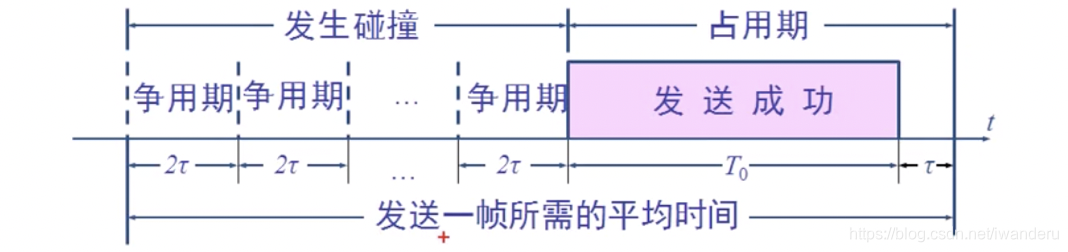 一个帧从开始发送,经可能发生的碰撞后,将再次重传多次,直到发送成功且信道转为空闲(即再经过t使得信道上没有信号在传播)时为止,是发送一帧所需的平均时间。